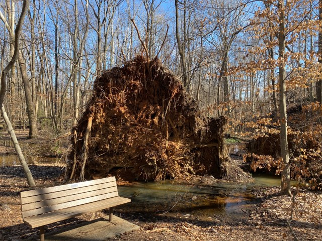 Signs led us across the street to Bog Garden, which was an immersive hike along a boardwalk. The bamboo stared at its reflection between the muddy banks and old trees towered over us sheltering the birds and squirrels. The root system on the fallen tree was probably ten feet in diameter.