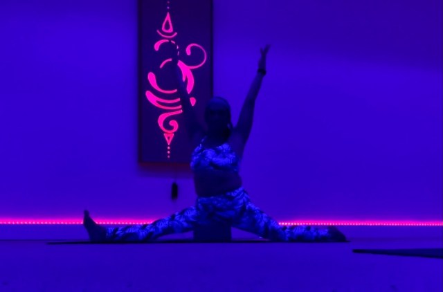 In Sanskrit, the name of the pose is Hanumasana, named for a character in Indian mythology, who is a monkey. But, he’s not just any monkey. As the sun of the Wind God, he was able to leap across the ocean, instrumental in saving Sita, the wife of exiled prince, Rama. The shape of the splits represents this incredible leap. Hanuman is often depicted carrying a mountain because in another feat, he goes to seek herbs to bring Rama’s brother back to life. Because he doesn’t know which herbs are the right ones, he simply brings back the entire mountain, so that he will have the right ones. Hanuman was brave, loyal, intelligent and skilled. These are great qualities to cultivate in my practice.