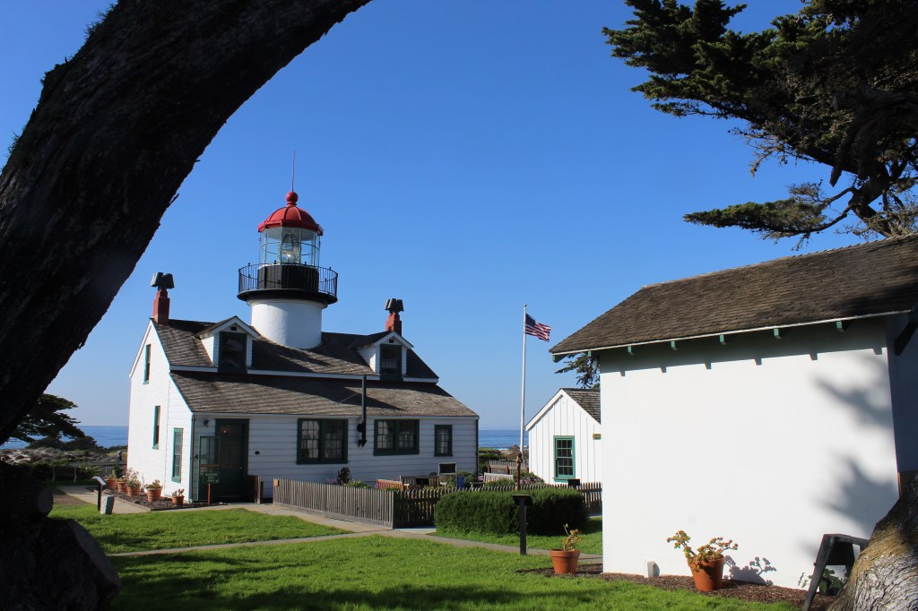After spending a couple of hours with the butterflies, I went in search of the oldest working lighthouse in California. I paid the admission and went in. It was quaint with antique furniture and displays of how the lighthouse worked long ago. I climbed the narrow winding staircase to observe more living quarters and displays about the lighthouse’s role during WW2. I saw Coast Guard officials and the volunteer said they were like celebrities, only coming about every three months to change the light bulb. Then when I started to go up to the top, she said it was closed today, because the CG was working. Usually it’s open. I wondered how I could get so lucky?